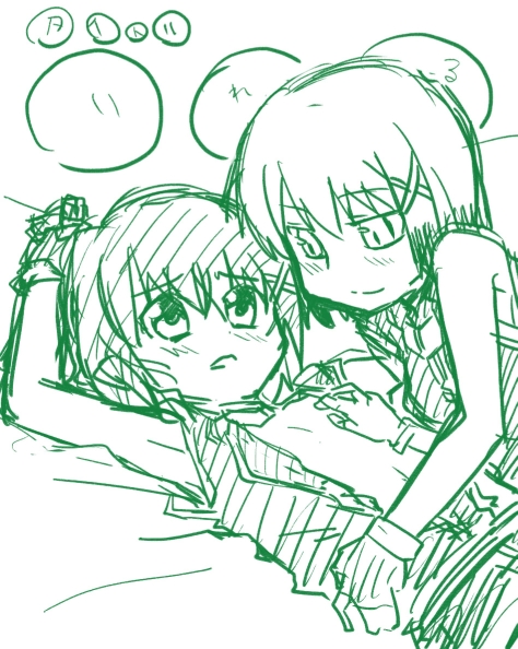 うん、遅いよね とりあえず働け機動六課は置いといて なのはPSPの漫画を書こうってことになったんよ んで はぐれが百合が書きたいっていうから 闇を統べる王xはやての百合本にしようってことで決まった だいたいのはなしは統べ子がはやて大好きっ子って設定にして はやてを手中に納めるために右往左往する話になる予定 もちろんエロじゃないけどね! ちるちるのことだから いつもどおりドタバタギャグになるのは間違いないだろうなって思います 今回はじめてはやてメインの本じゃなくなるなー とりあえずちるちるの話ができるのを待ってる状態だから 待ってる間表紙のラフかいたよー これじゃあ百合というよりもレズだなー 胸はだけさせるのはやめようかなーとか どっちかカメラ目線にしようかなーとかを考え中 とりあえずウチの百合好きはぐれに意見を着いてみようかな あれ・・・なんかブログに書こうと思ってたんだけど忘れた…
